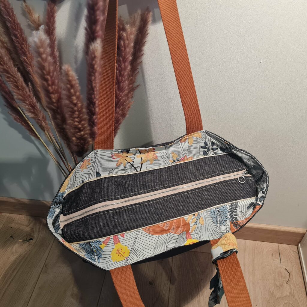 Intérieur en coton uni Oeko-Tex, tissu imprimé et finition passepoilée.
