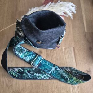 – Matières : Jean noir éco-conçu fabriqué en France (33,3% Coton bio 33,3% Coton recyclé 33,3% Polyester recyclé bouteilles) et tissu imprimé forêt enchanté en percale de coton revalorisée d’une grande maison française de linge de lit.